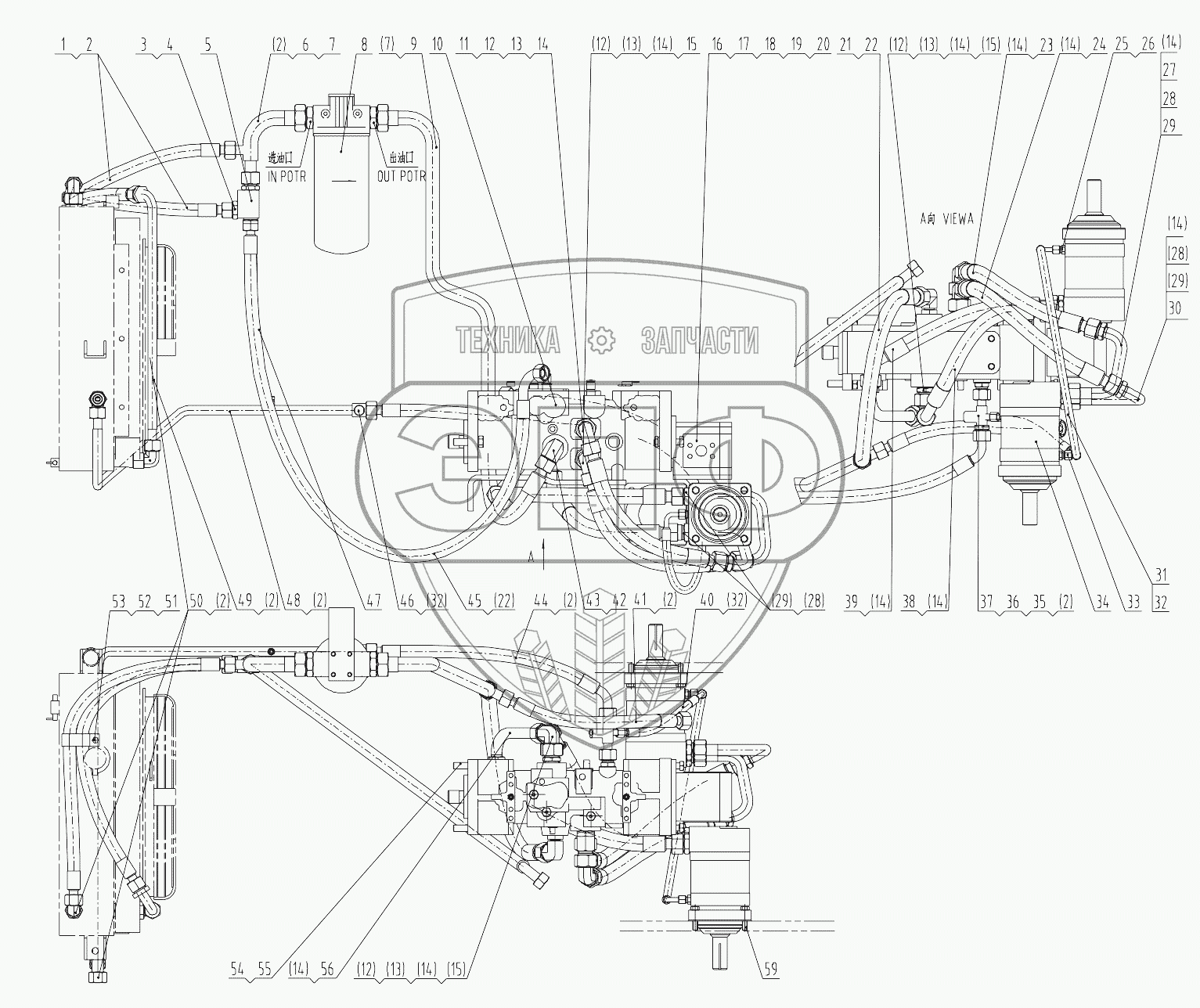 Каталог запасных частей к технике: LiuGong CLG-365A. 13E0032 013 TRAVEL HYDRAULIC SYSTEM