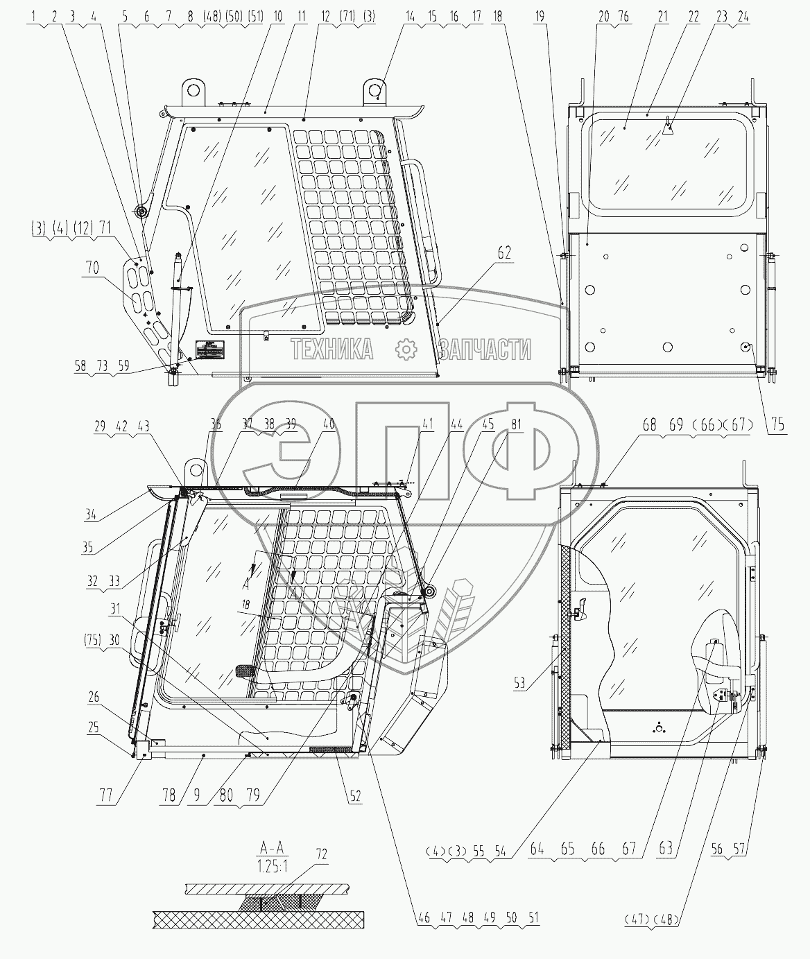 Каталог запасных частей к технике: LiuGong CLG-365A. 41E0356 014 CAB AS