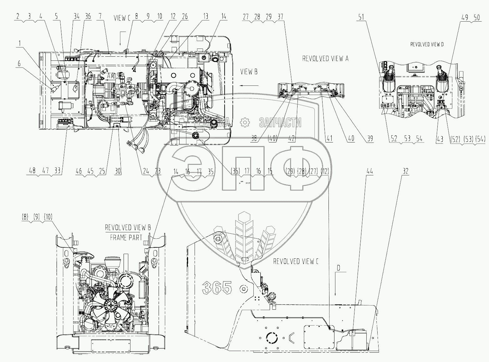 Каталог запасных частей к технике: LiuGong CLG-365A. 46C1627 008 FRAME WIRING AS