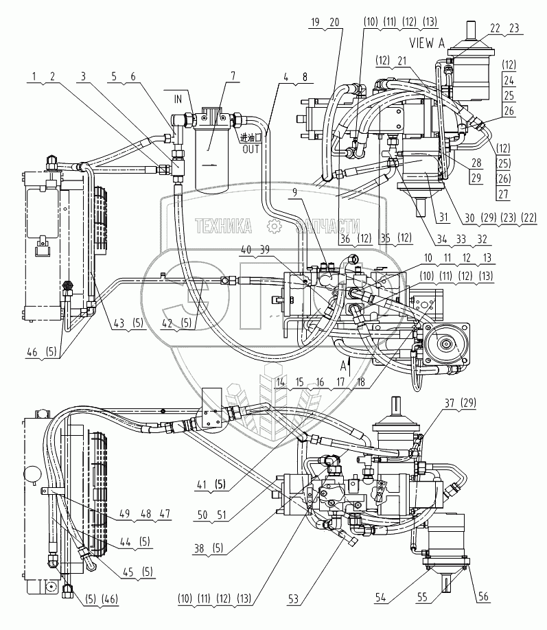 Каталог запасных частей к технике: LiuGong CLG-385A. 13E0044 007 TRAVEL HYDRAULIC SYSTEM