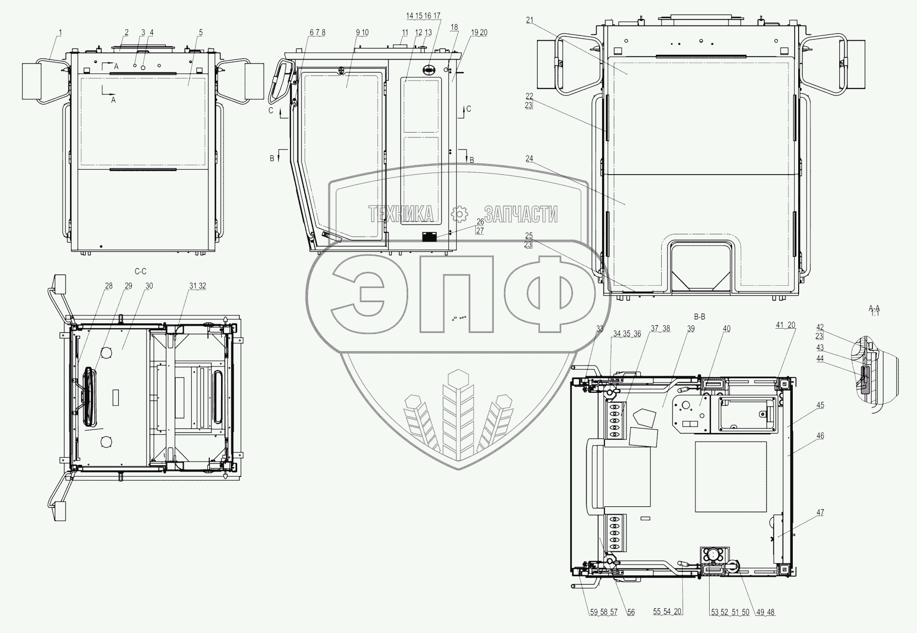 Каталог запасных частей к технике: LiuGong CLG-4215. 41Y0333-000-00 CAB AS