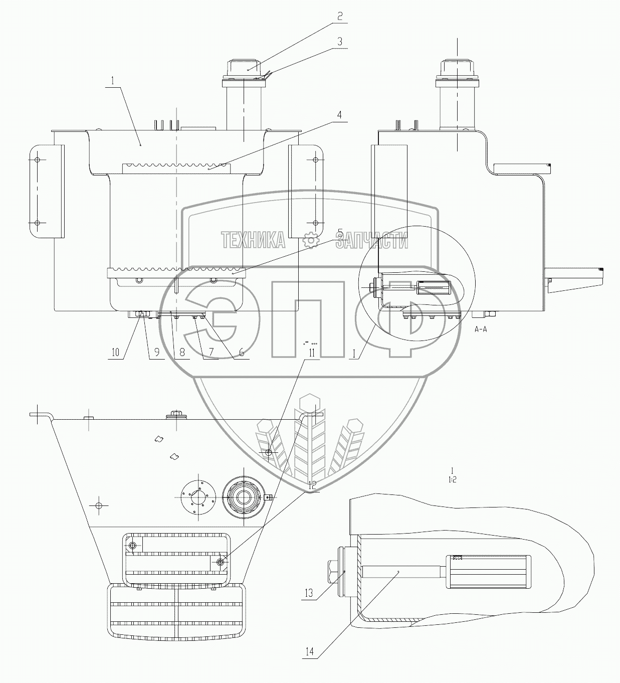 Каталог запасных частей к технике: LiuGong CLG 777A-S. 21C0825 000 FUEL TANK