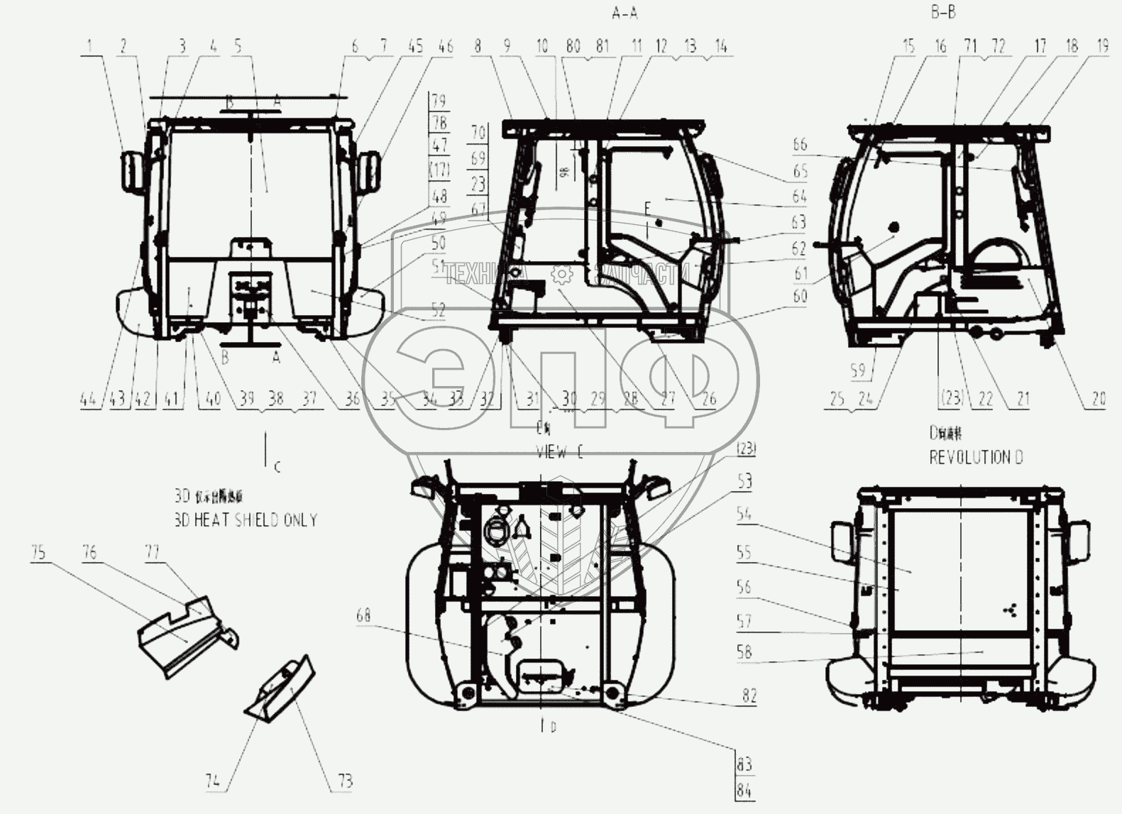 Каталог запасных частей к технике: LiuGong CLG 777A-S. 41Y0117 001 CAB AS