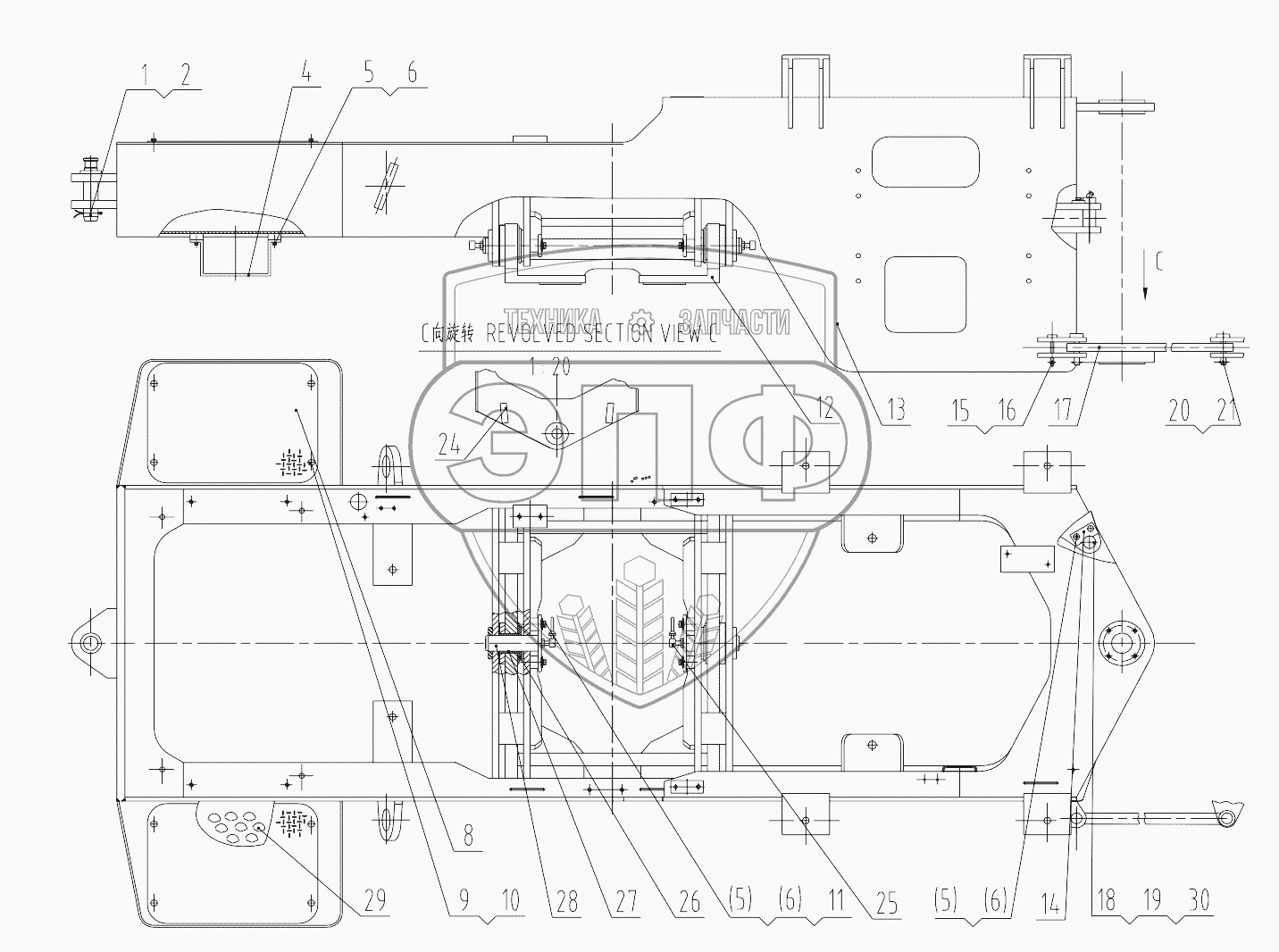 Каталог запасных частей к технике: LiuGong CLG-836. 30E0320 004 REAR FRAME AS