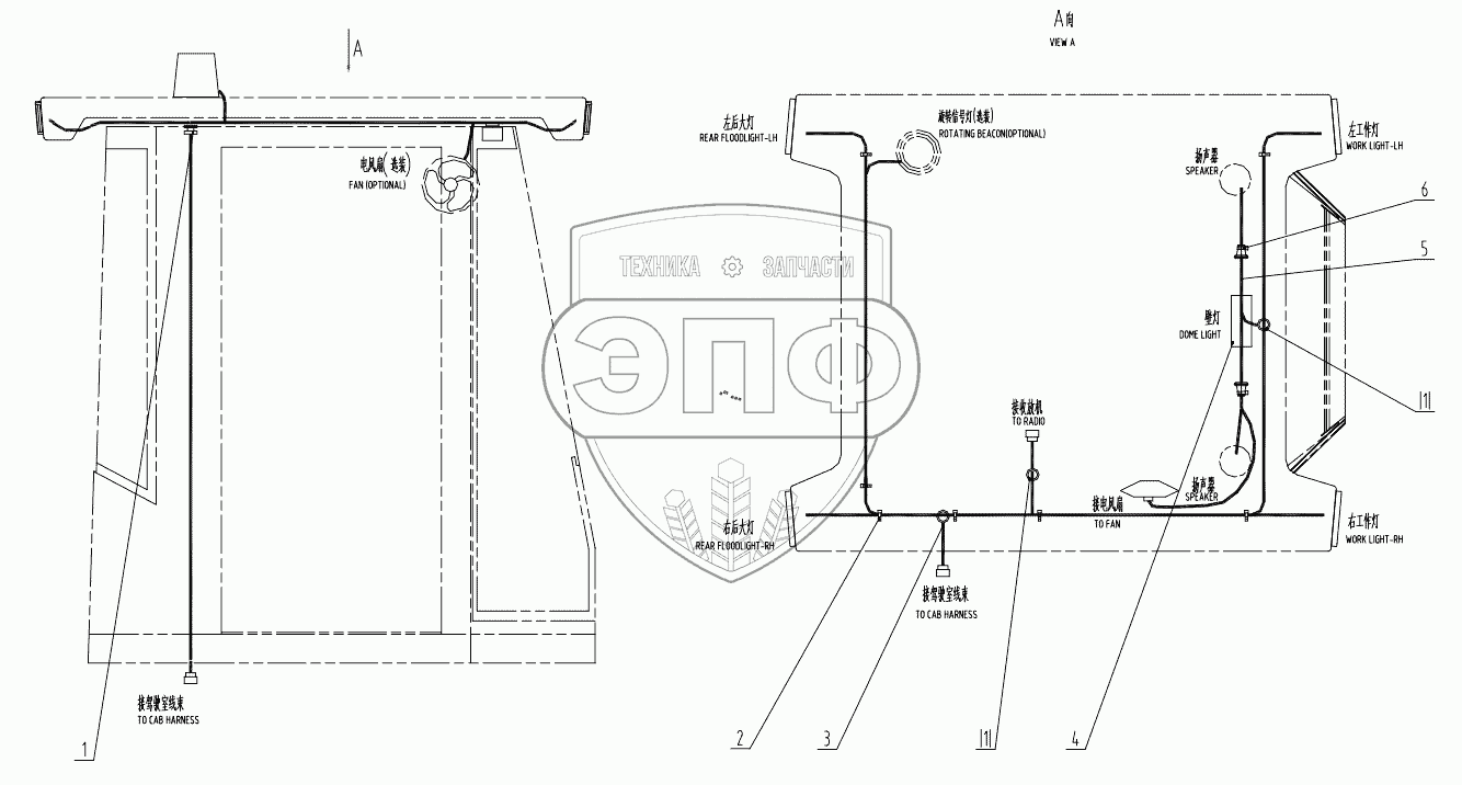Каталог запасных частей к технике: LiuGong CLG-842. 46C3483 000 DOME LIGHT WIRING