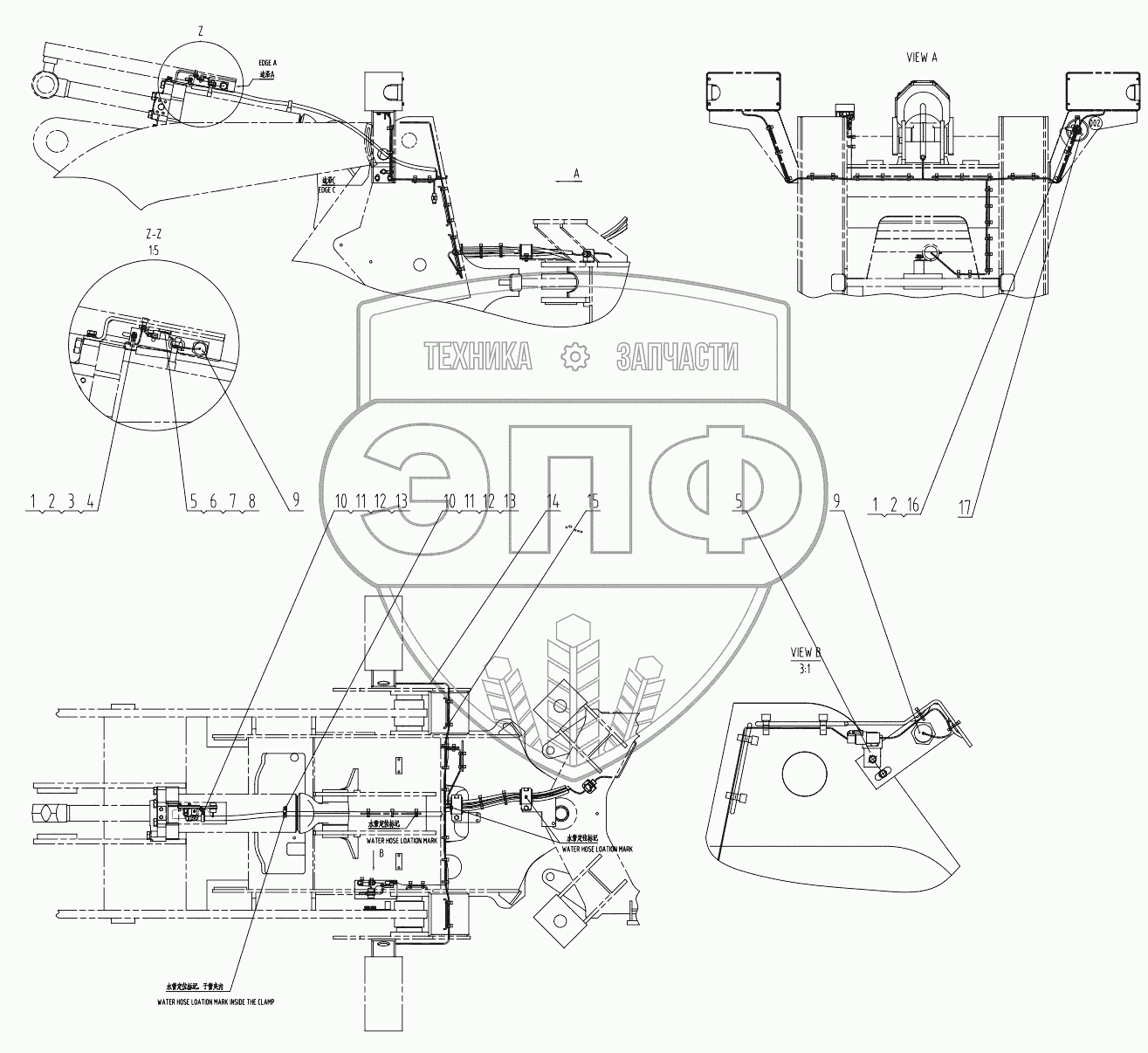 Каталог запасных частей к технике: LiuGong CLG-842. 46C4506 002 FRONT FRAME WIRING