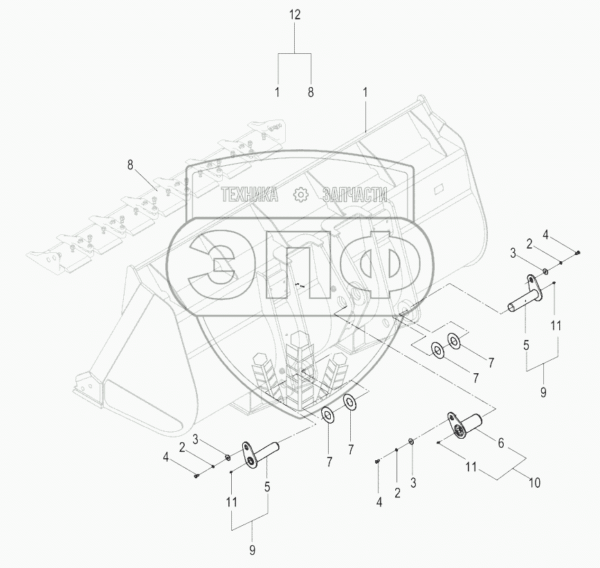 Каталог запасных частей к технике: LiuGong CLG-855N. 38Y0197_000_00 BUCKET