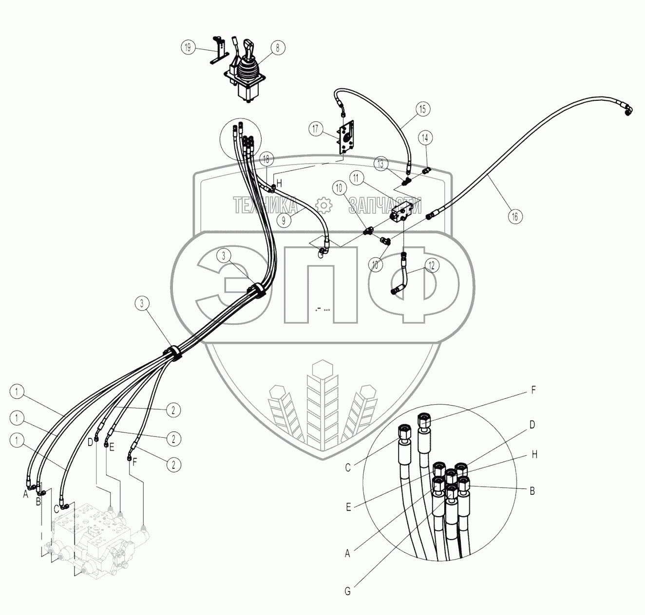 Каталог запасных частей к технике: LiuGong CLG-877. 00C0937_003_00 PILOT CONTROL LINES