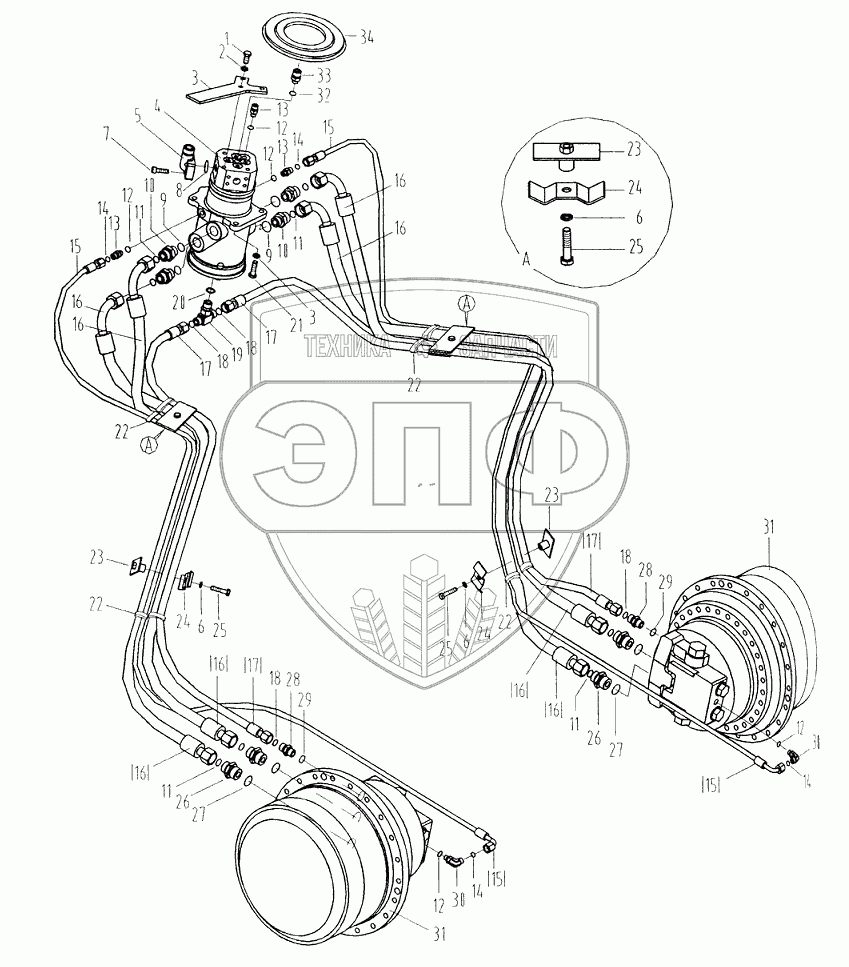 Каталог запасных частей к технике: LiuGong CLG-925. Гидравлический трубопровод ходовой части