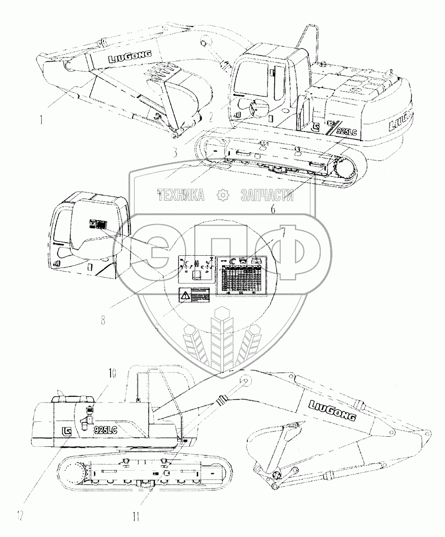 Каталог запасных частей к технике: LiuGong CLG-925. Предупредительные знаки и таблички