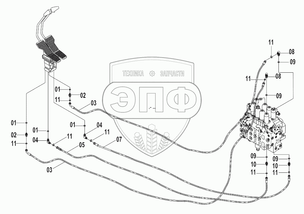Каталог запасных частей к технике: LiuGong CLG-925D. 12E0201 PILOT HYDRAULIC SYSTEM (F)