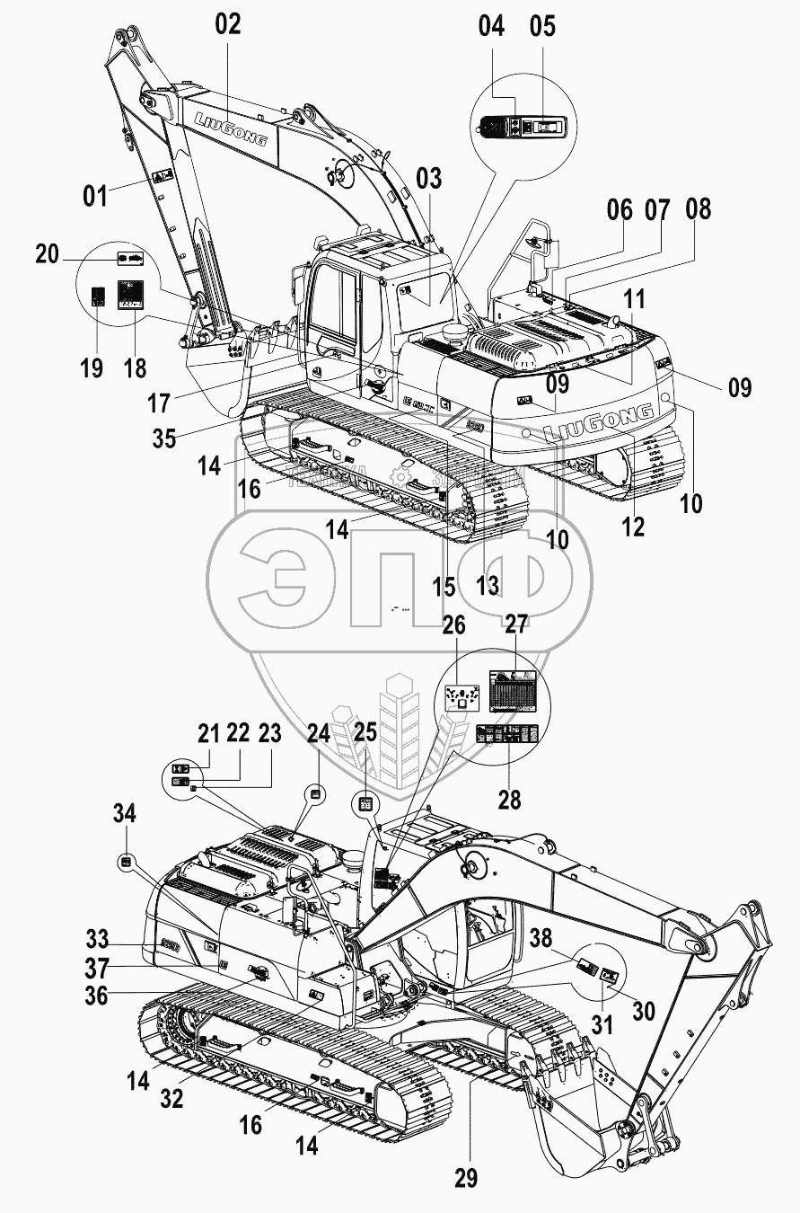 Каталог запасных частей к технике: LiuGong CLG-925D. 45Е0997 003 DECAL GROUP