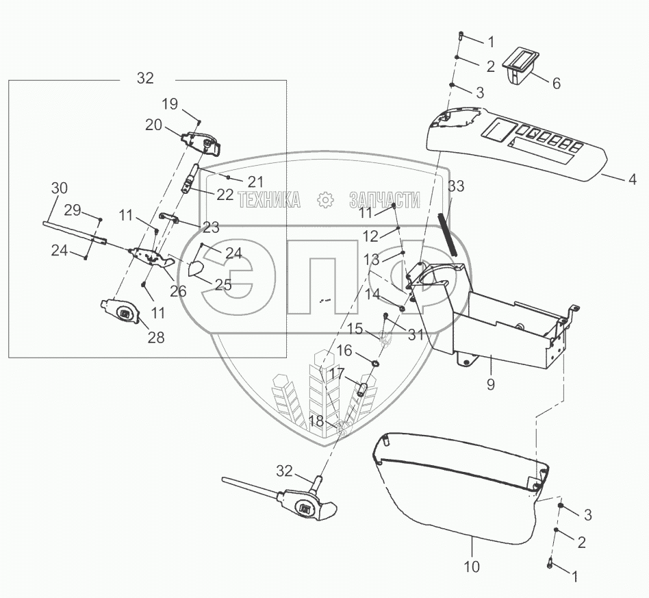 Каталог запасных частей к технике: LiuGong CLG-933E. 34C1707-001-00 CONSOLE AS-LH