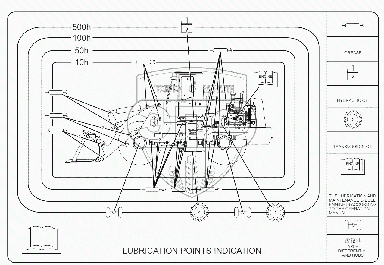 Каталог запасных частей к технике: Lonking (LongGong) CMD-835E. Greasing Points Indication Layout