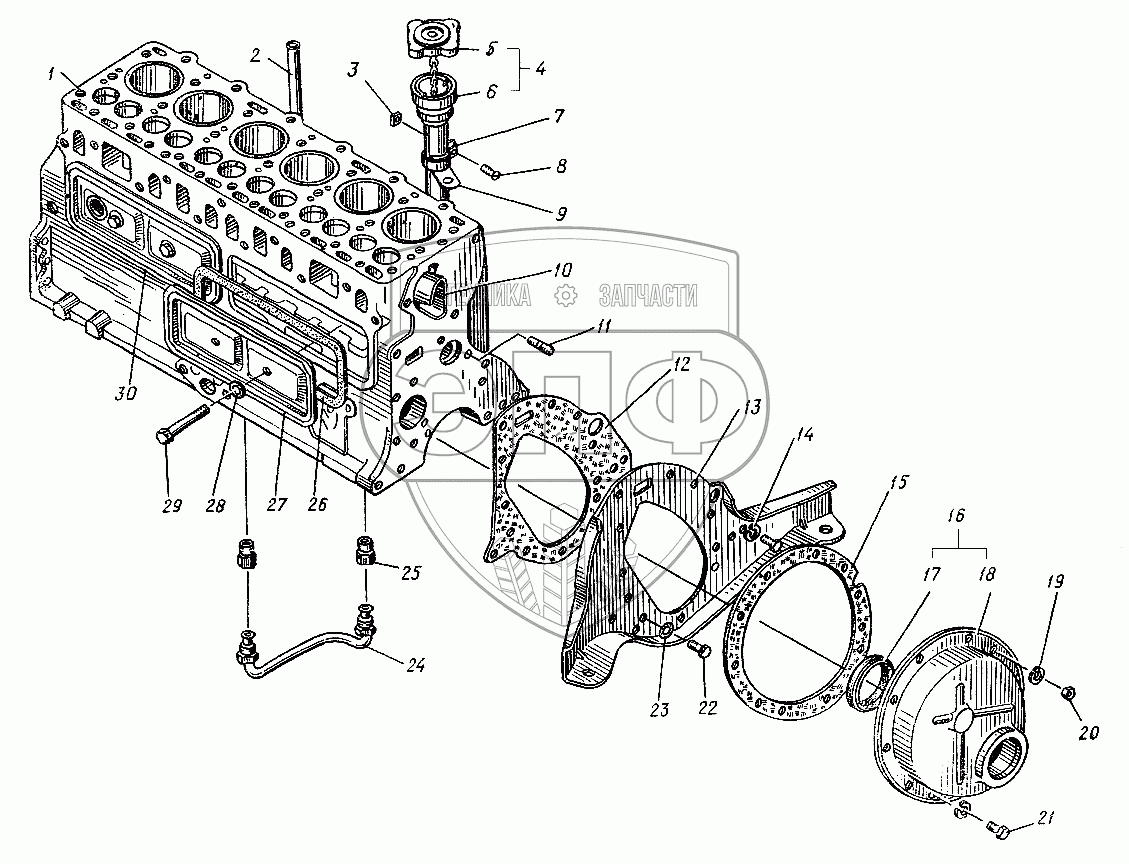 Каталог запасных частей к технике: ЛЗА 4014. Блок цилиндров двигателя