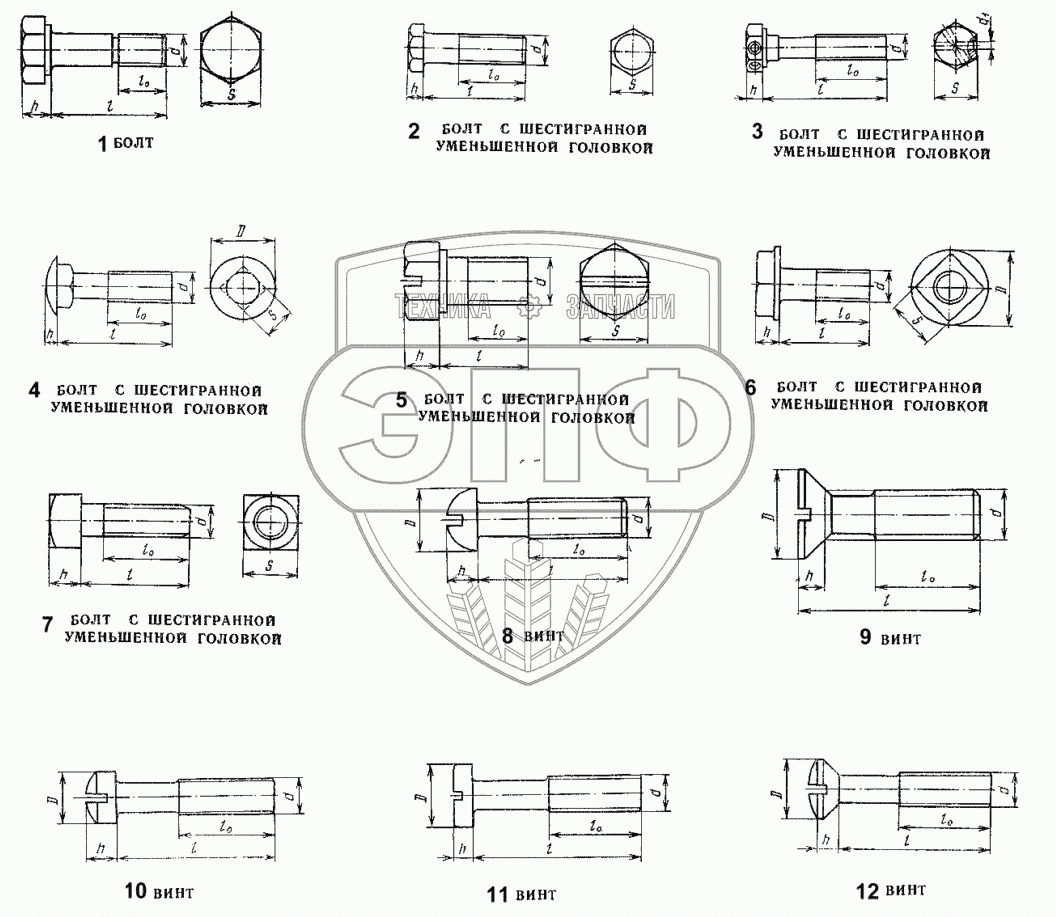 Каталог запасных частей к технике: ЛЗА 4014. Болты, винты
