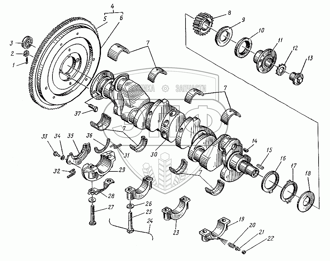 Каталог запасных частей к технике: ЛЗА 4014. Вал коленчатый и маховик
