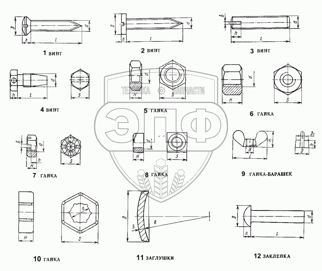 Каталог запасных частей к технике: ЛЗА 4014. Винты, гайки, заклепки, заглушки