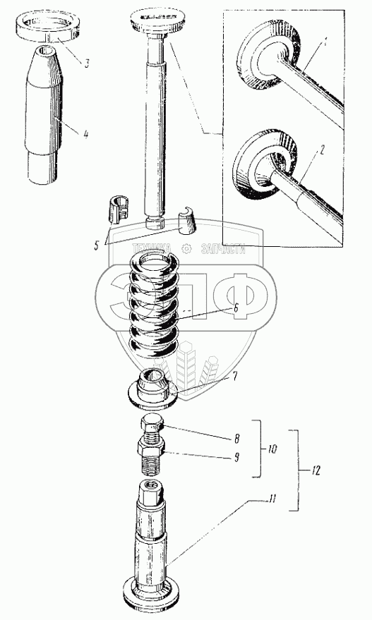 | 10 | 12-1007060 | Болт толкателя регулировочный с гайкой в сборе | Нет на складе | |