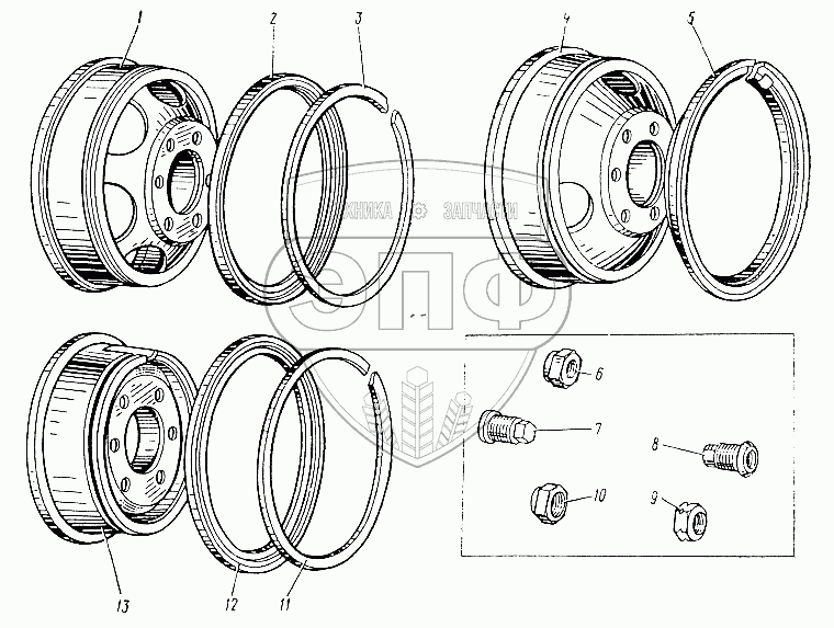 | 13 | 5,005-15-3101015 | Диск и обод в сборе | Нет на складе |