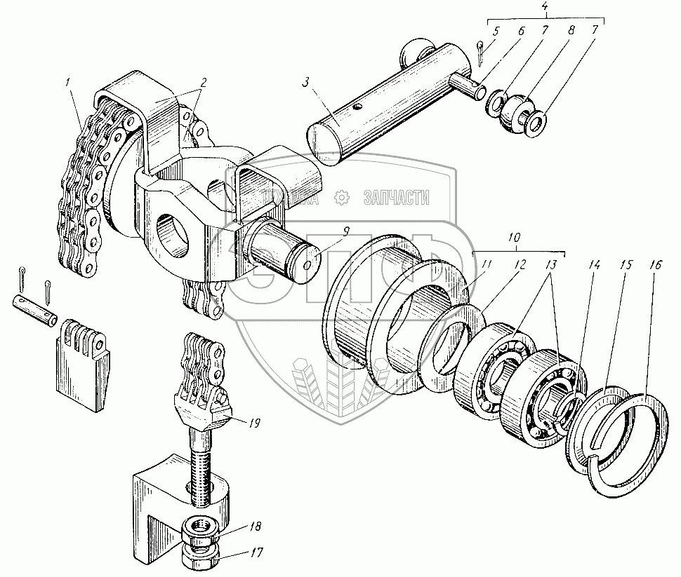 Каталог запасных частей к технике: ЛЗА 4043М. Механизм подъема грузоподъемника погрузчика 4045Р
