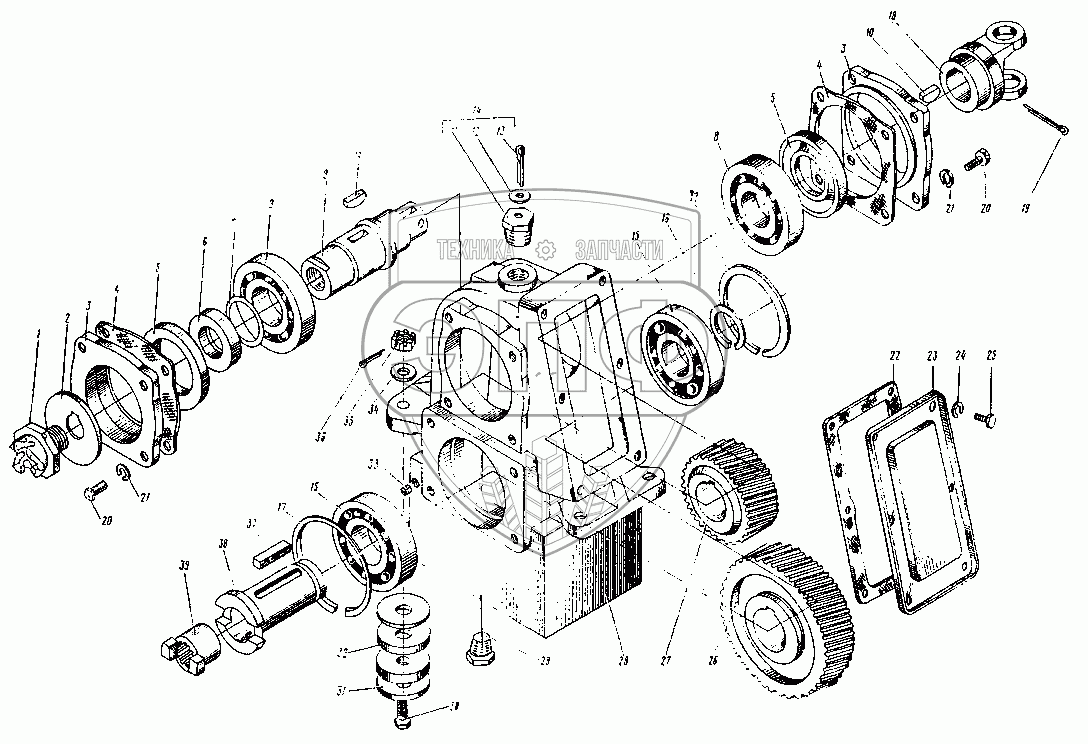 Каталог запасных частей к технике: ЛЗА 4043М. Редуктор привода гидравлических насосов