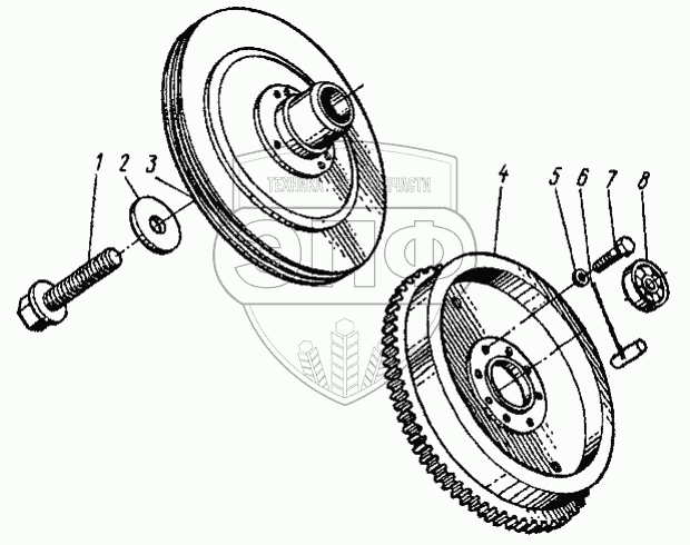 Каталог запасных частей к технике: ЛЗА 40810. Маховик и шкив двигателя 40810-1005