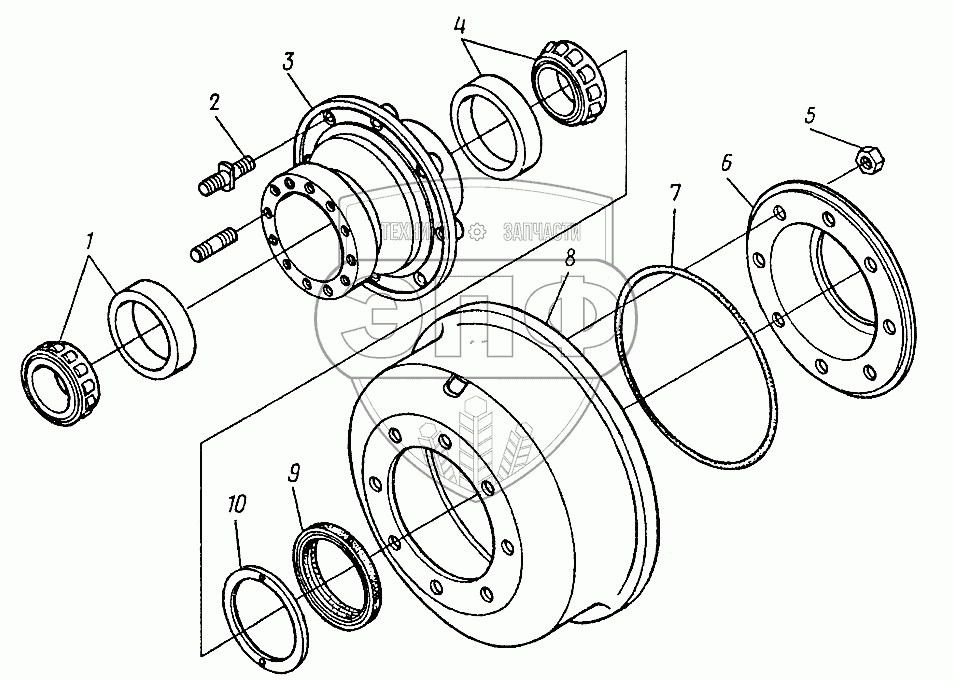 Каталог запасных частей к технике: ЛЗА 40810. Ступицы передних колес 130-3104