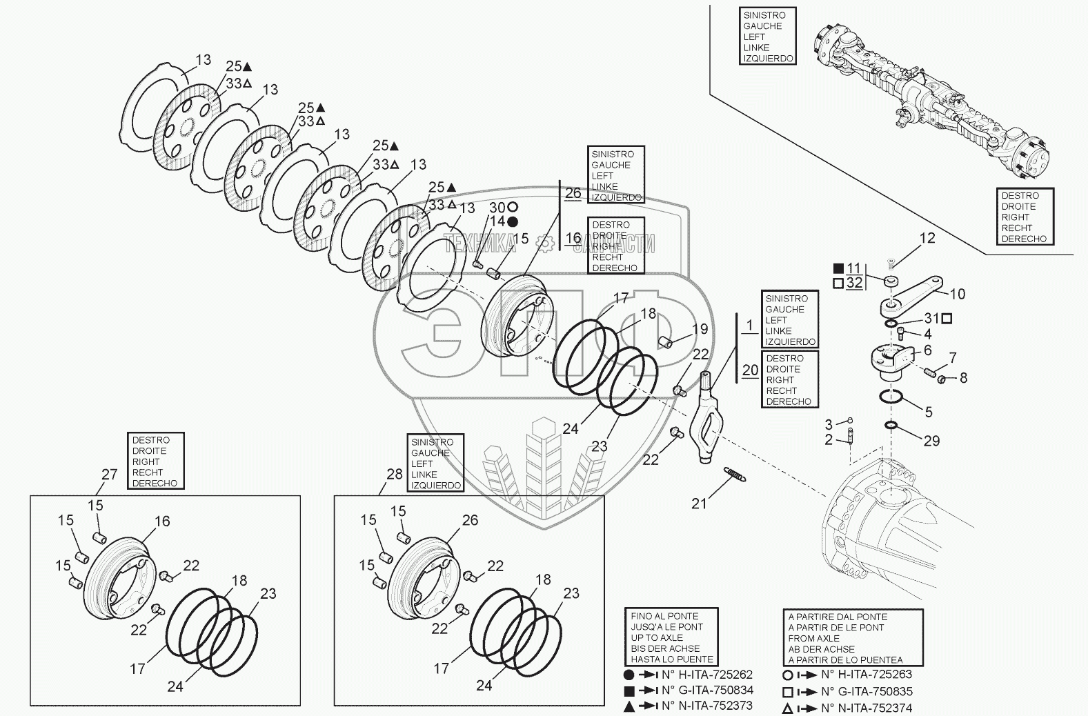 Каталог запасных частей к технике: MANITOU MT-X1235STS3-E3. FRONT AXLE HYDRAULIC BRAKE