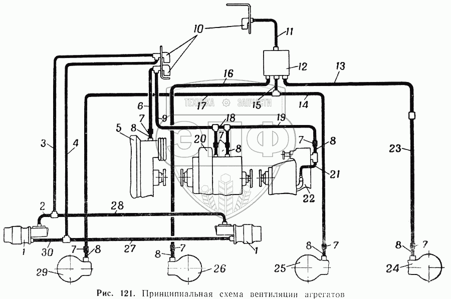 Каталог запасных частей к технике: МАЗ-537. Принципиальная схема вентиляции агрегатов
