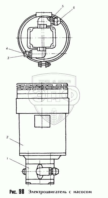 Каталог запасных частей к технике: МоАЗ-40481. Электродвигатель с насосом