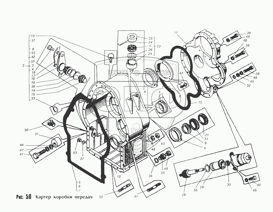 Каталог запасных частей к технике: МоАЗ-40481. Картер коробки передач