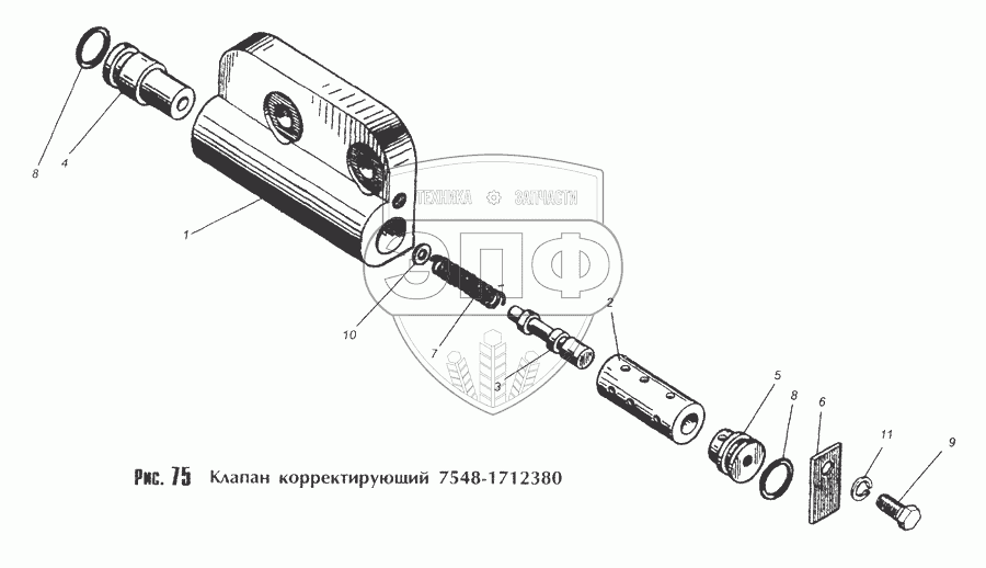 Каталог запасных частей к технике: МоАЗ-40481. Клапан корректирующий 7548-1712380