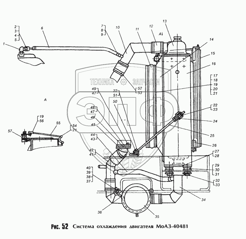 Каталог запасных частей к технике: МоАЗ-40481. Система охлаждения двигателя МоАЗ-40481