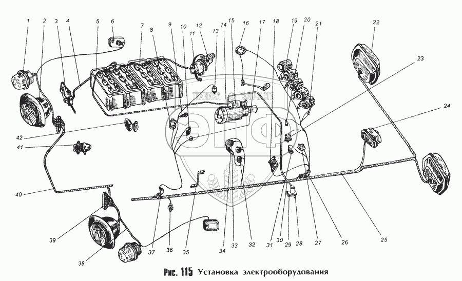 Каталог запасных частей к технике: МоАЗ-40481. Установка электрооборудования