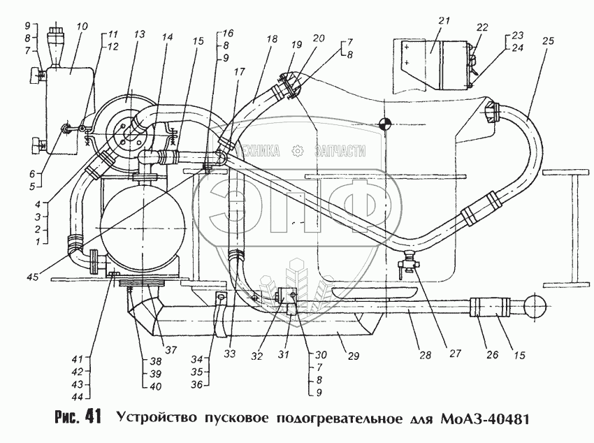 Каталог запасных частей к технике: МоАЗ-40481. Устройство пусковое подогревательное для МоАЗ-40481