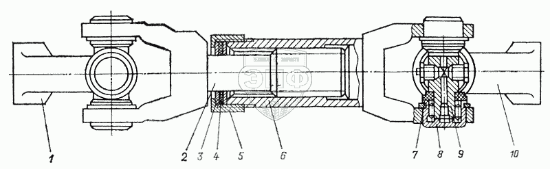 Каталог запасных частей к технике: МоАЗ-6014. Карданный вал 6442-3401300