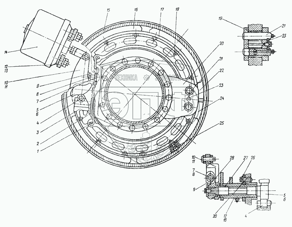 Каталог запасных частей к технике: МоАЗ-6014. Колесный тормоз скрепера 99862-3501000