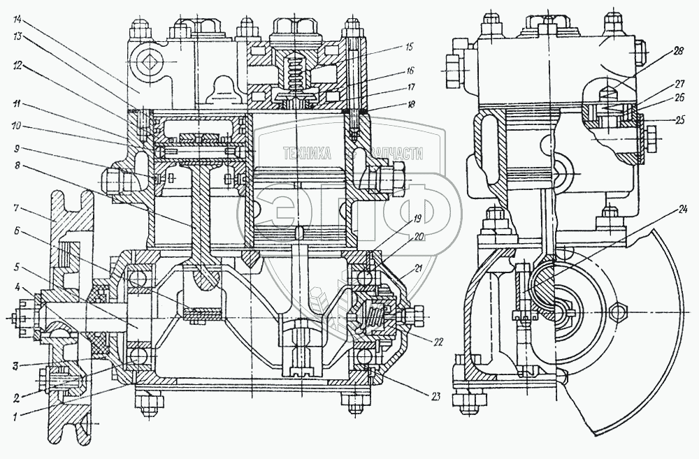 Каталог запасных частей к технике: МоАЗ-6014. Компрессор 500-3509015-Б1