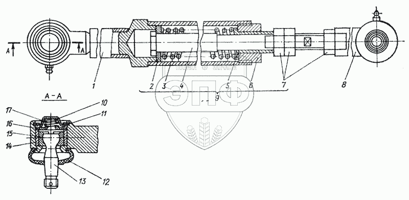 Каталог запасных частей к технике: МоАЗ-6014. Передняя тяга 6442-3421009