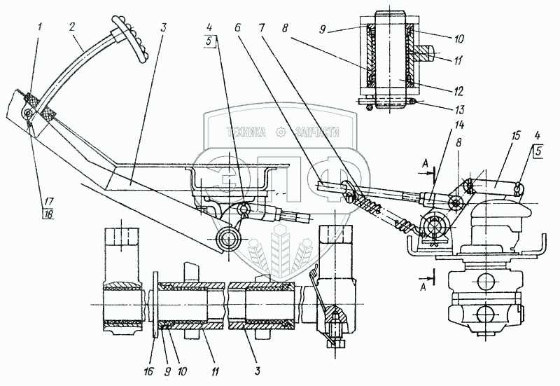 Каталог запасных частей к технике: МоАЗ-6014. Привод тормозного крана 6442-3500032