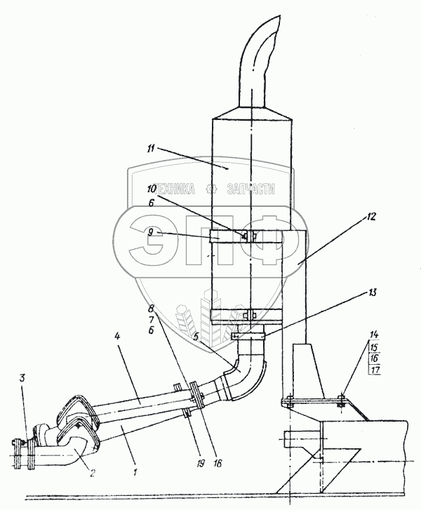 Каталог запасных частей к технике: МоАЗ-6014. Система выпуска газа 6442-1200001