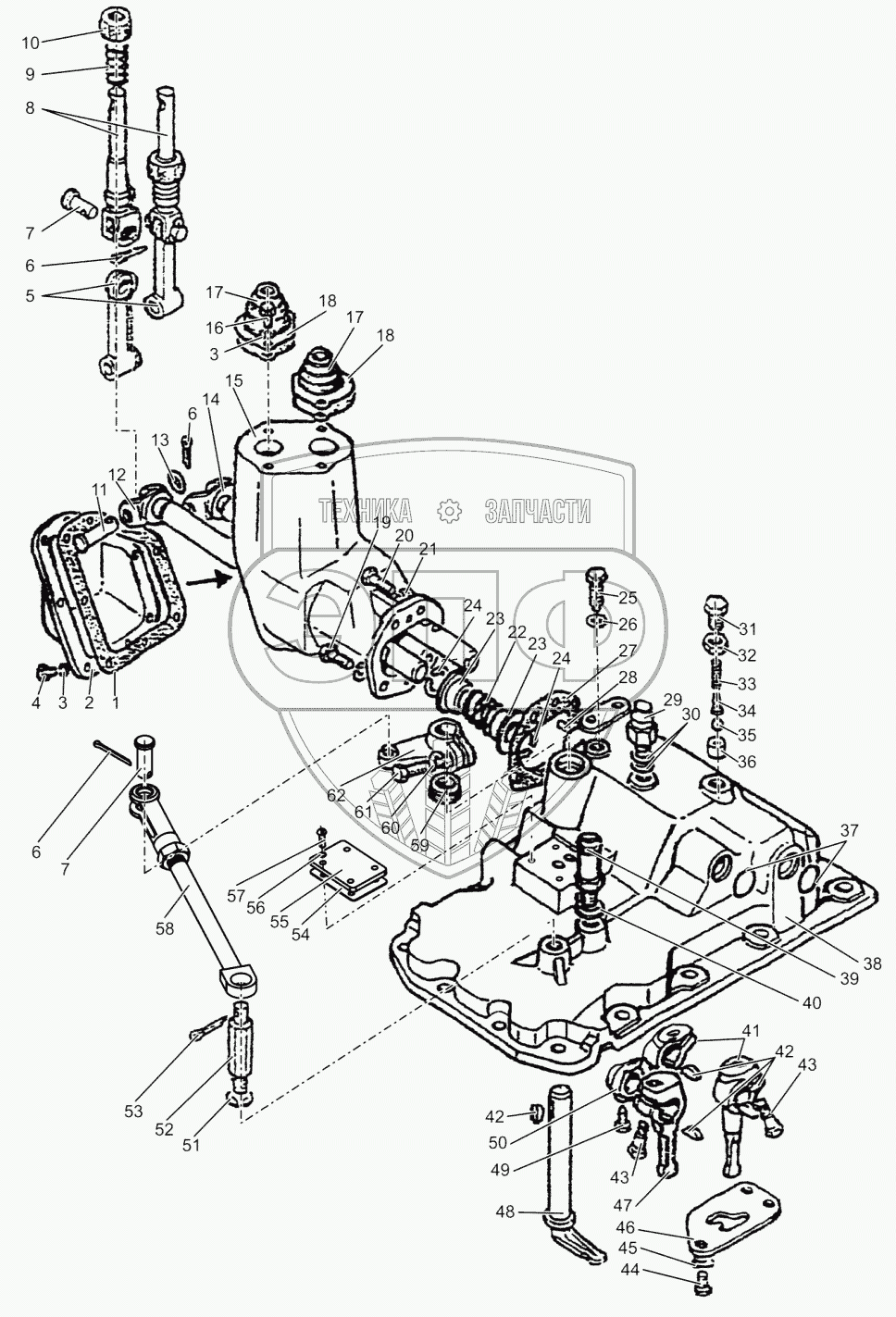 Каталог запасных частей к технике: МТЗ 1502. Механизм управления коробкой передач