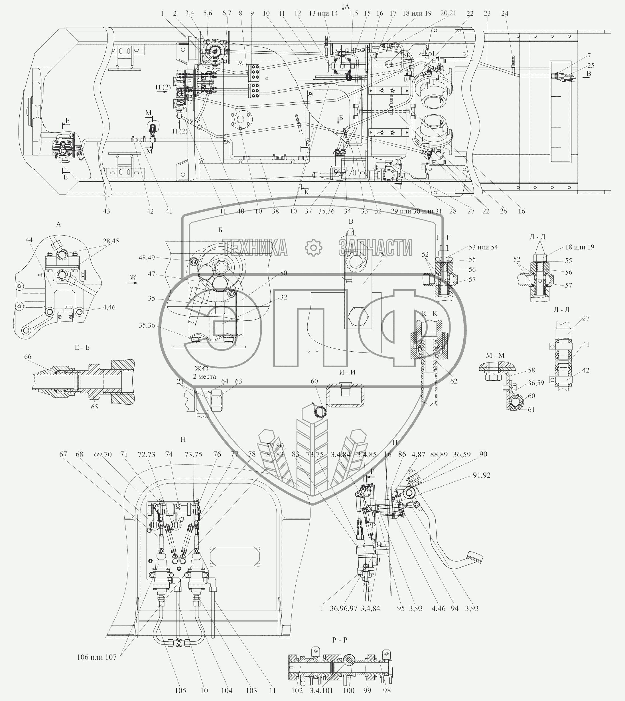 Каталог запасных частей к технике: МТЗ 1502. Система управления тормозами