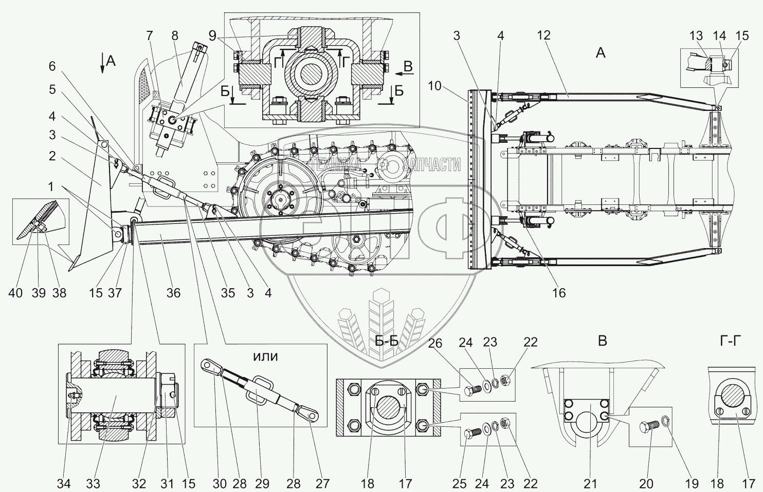 Каталог запасных частей к технике: МТЗ 1502. Установка отвала 1502-4607110-А