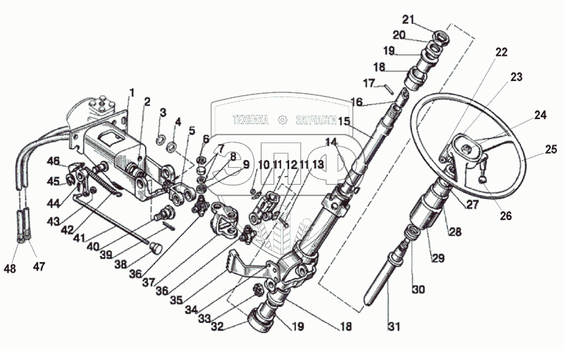 Каталог запасных частей к технике: МТЗ МЛ-131. Колонка рулевая с откидным колесом