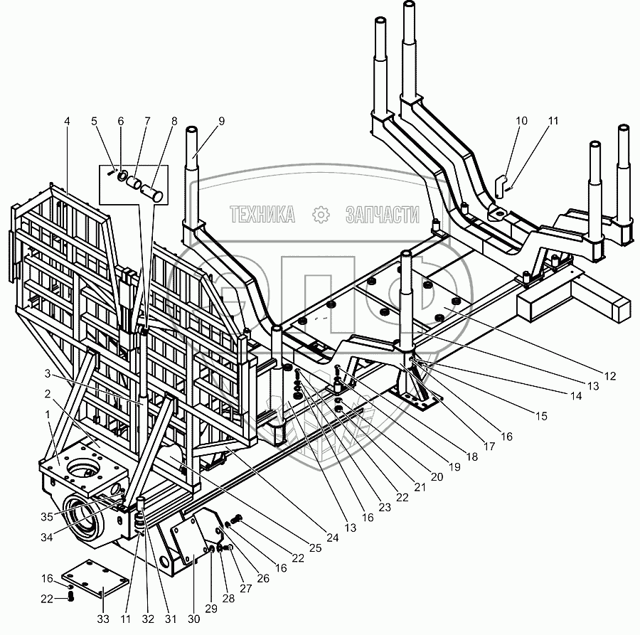Каталог запасных частей к технике: МТЗ МЛПТ-344. Рама задняя