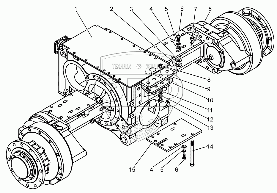 Каталог запасных частей к технике: МТЗ МЛПТ-344. Установка моста заднего