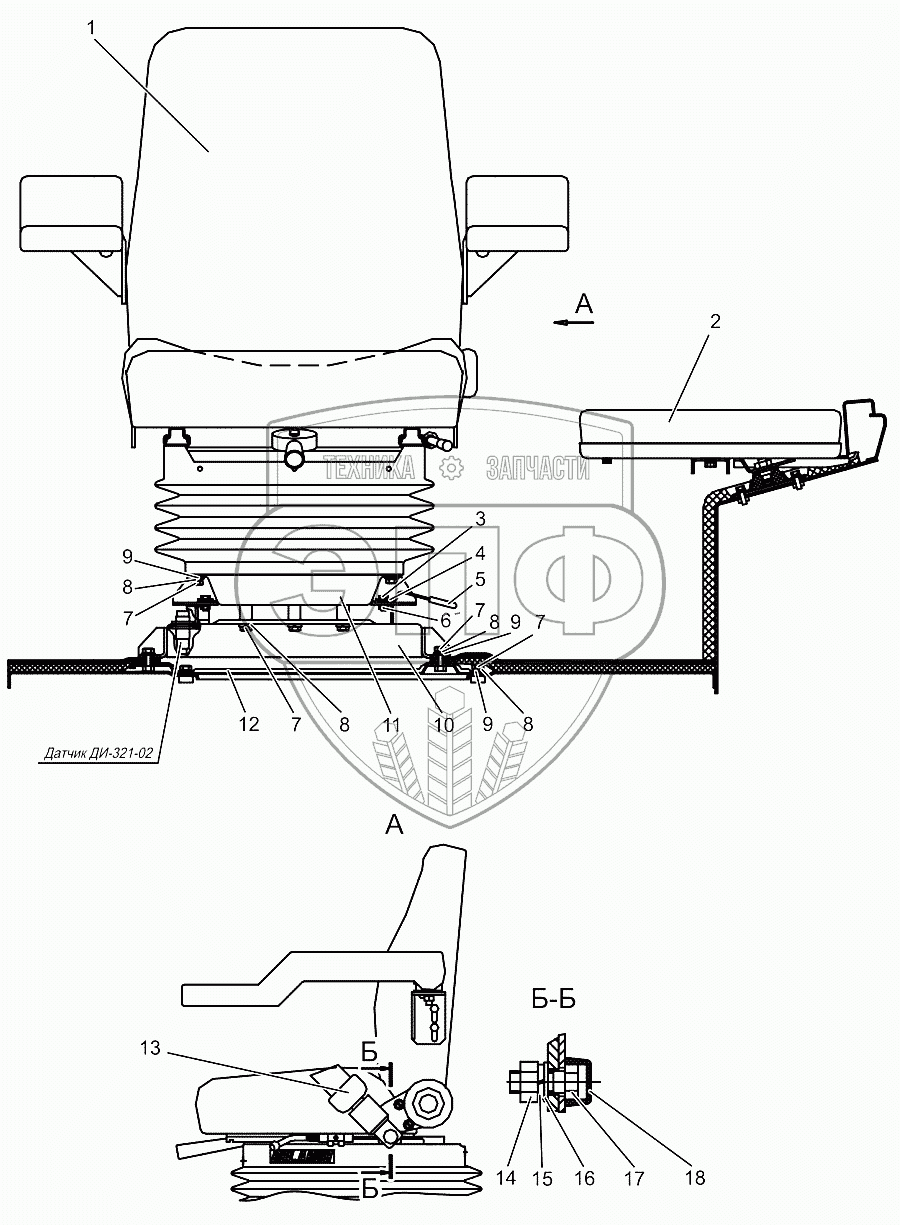 Каталог запасных частей к технике: МТЗ МЛПТ-344. Установка сидений. Сиденье