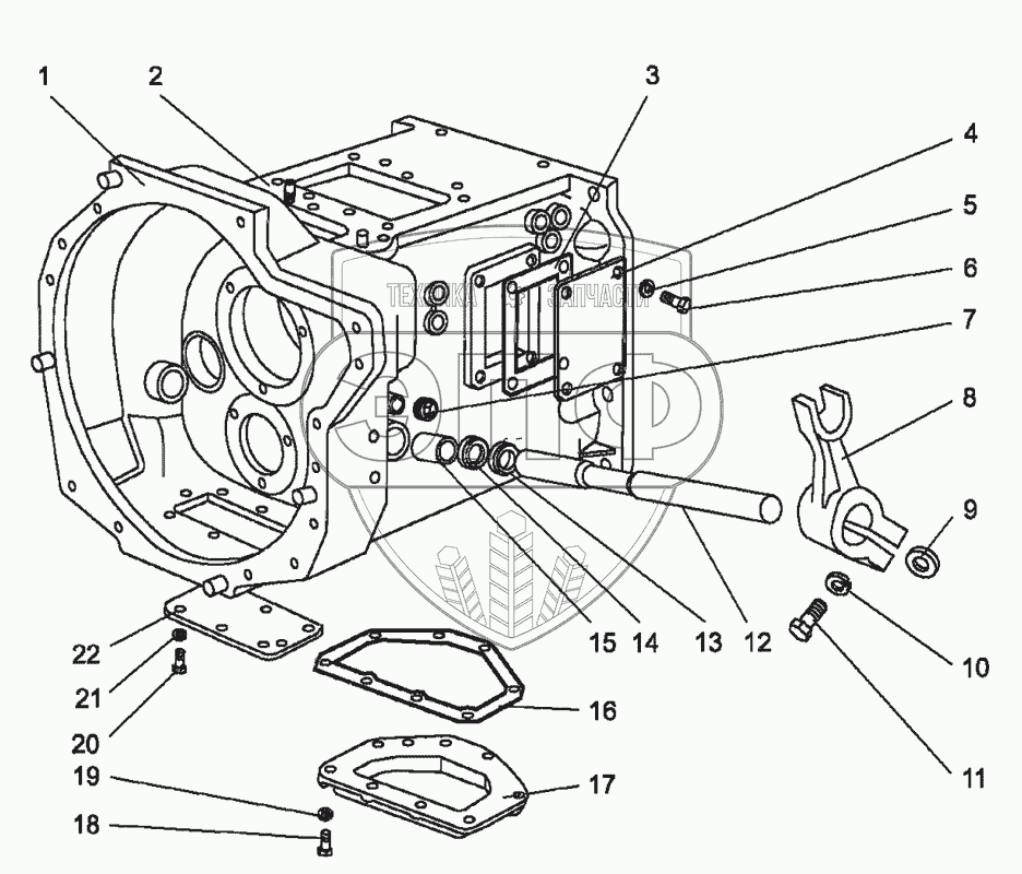Каталог запасных частей к технике: МТЗ МЛПТ-354М. Корпус сцепления
